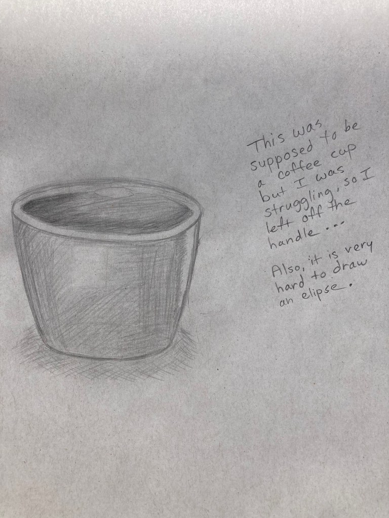 I’m going to include one of my sketches below in order to battle perfectionism. It is far from perfect but I’m proud of it. Why? Because I did it, I took the time and did it, and that makes it pretty nice.